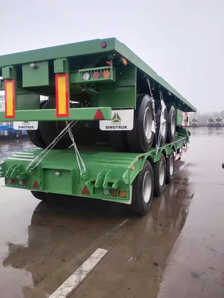 Low flatbed semi-trailers are usually used to transport heavy vehicles, rail vehicles, mining machinery, forestry machinery, construction machinery and other heavy-duty goods. The series of low flat semi-trailers have flat, concave beam and tire exposed structures. The longitudinal beams are straight or goose neck. The frame is stepped, and the cross section of the longitudinal beam is I-shaped, which has the characteristics of high rigidity and high strength. According to the number of axles and the size of the tires, the load of the low-flat semi-trailer is also different. It can be customized according to the load of the goods.